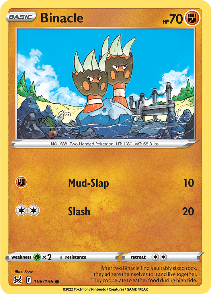 Binacle is a dual type Rock/Water Pokemon introduced in Generation VI. It evolves into Barbaracle starting at level 39.